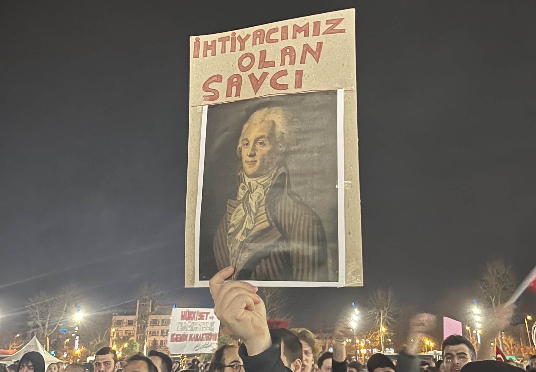 2023 yılında, Fransa’da emeklilik yaşının 62’den 64’e çıkarılmasını öngören emeklilik “reformu”na karşı milyonlarca emekçi sokaklara çıkarak aylarca süren protestolar gerçekleştirdi. Bu protestolarda çekilen iki fotoğraf, tarihsel ve siyasal açıdan çok önemli bir mesaj taşıyordu. İlk fotoğrafta, yürüyüşçülerin taşıdığı pankartta “L’avenir Appartient Aux Révolutionnaires” (Gelecek Devrimcilerindir) yazılıydı. Pankartın solunda Robespierre’in, sağında ise Lenin’in resmi yer alıyordu. İkinci fotoğrafta ise bir gösterici, elindeki dövizde “Robespierre, Reviens!” (Robespierre, Geri Dön!) yazısını taşıyordu. 19 Mart 2025’te Ekrem İmamoğlu’nun gözaltına alınmasının ardından, birçok şehirde on binlerce kişi sokaklara döküldü. Bu kez Türk protestocular, Robespierre’in resminin bulunduğu bir dövizde “İhtiyacımız olan savcı” yazısını taşıyordu. Tarihin diyalektiği, üç fotoğrafın içine sığmıştı! (Ancak Robespierre’in doğrudan bir savcı olarak görev yapmadığı da belirtelim.)